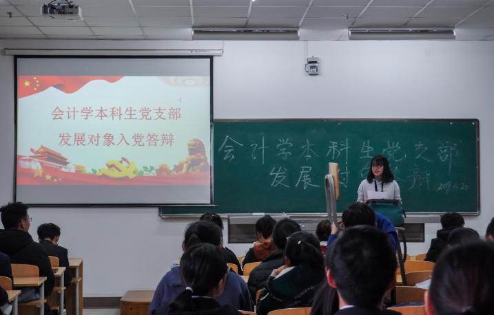 于贺兰山校区文荟楼103室举行了会计学本科生党支部发展对象答辩。会计学本科生党支部书记王嘉豫、党支部副书记陈兵、组织委员于亚丽、宣传委员马晓春、吴一丹担任评委。本次答辩由17级会计学(2)班罗妍主持,苏志琴等29名发展对象参加答辩。