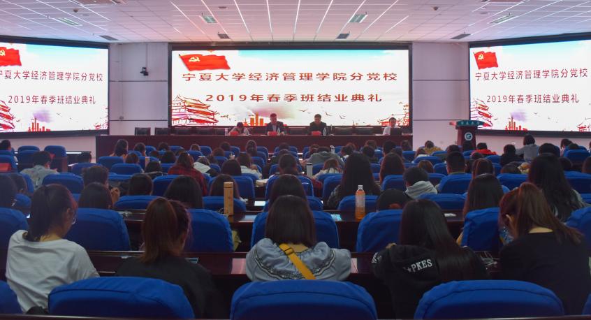 520日中午,麻将胡了2 于贺兰山校区文荟楼东报告厅举办了分党校2019年春季班结业典礼。麻将胡了2 党委书记张桓,党委副书记、工商管理本科生党支部书记程胜利以及经济学本科生党支部书记何韶华参加会议,本期及往期顺利结业的积极分子、发展对象到场参会,本次活动由何韶华主持。