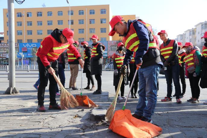 组织部将近70名建党对象分为两组,分别于上午8点至11:30以及下午1点至5:30进行体验活动。他们准时集合,排着整齐的队伍向怀远市场走去,到达后,在环卫工人的指导下,都争先恐后的打扫起来。在这严寒的冬日,建党对象们身穿橙色马甲的身影成为路边最靓丽的风景。即使寒风刺骨,他们的手已经冻得通红,但一片纸屑、一个塑料袋也不被他们放过;娴熟的打扫姿态,丝毫不逊色于专业的清扫人员。最后,在建党对象们的团结协作与不懈努力之下,怀远市场的街道变得分外干净,他们的辛勤劳动赢得了环卫工人与路人们的认可与赞许。