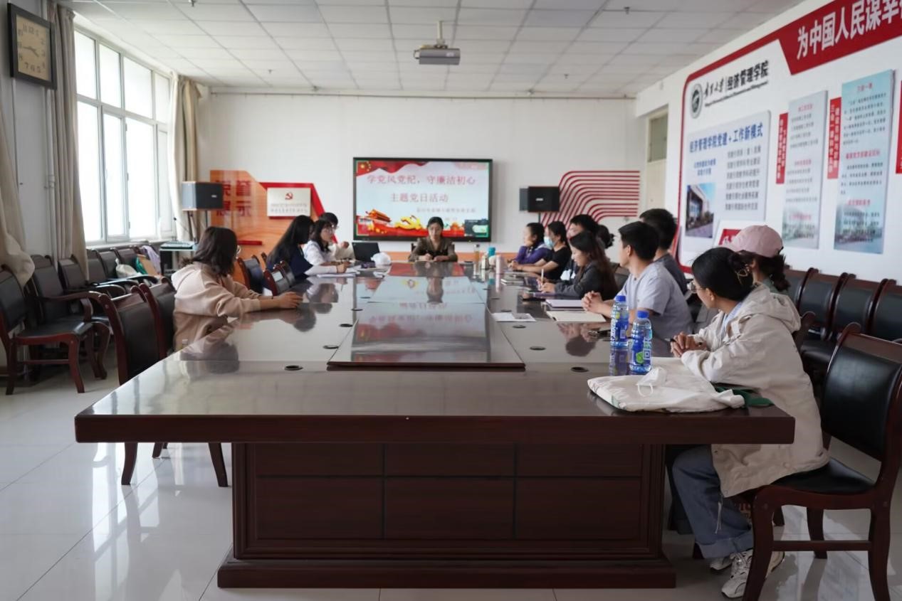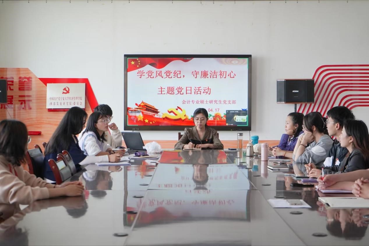 (西部发展研究院)会计专业硕士研究生党支部“学党风党纪,守廉洁初心”主题党日活动于党建办公室902顺利开展。会计专业硕士研究生党支部书记李文佳,会计专业硕士研究生党支部副书记马和霞及会计专业硕士研究生党支部全体成员参加会议,会议由马和霞主持。