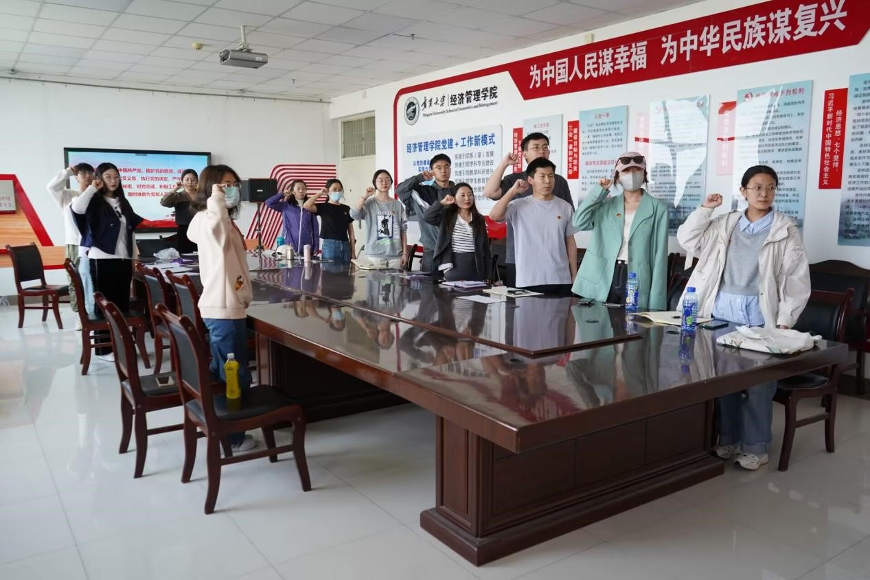 会议最后李文佳作出总结,全体成员重温入党誓词。李文佳结合实际指出党支部成员要将个人发展与整个国家发展相结合,明确目标,坚定初心;严于律己,行稳致远。
