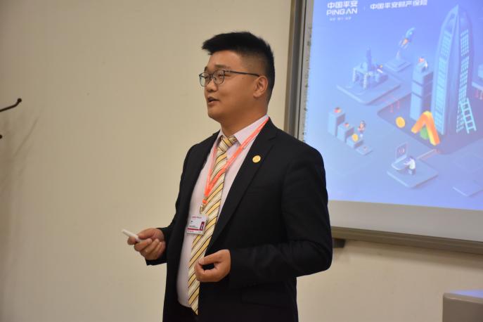 招聘会开始后,来自平安产险宁夏分公司的宣讲员李伟从自身工作经历出发,向大家分享了在自己平安产险公司的工作经验,并欢迎大家积极应聘。成立于1988年的平安产险公司是中国第一家股份制保险企业,至今已发展成为融保险、银行、投资三大主营业务为一体、核心金融与互联网金融业务并行发展的个人金融生活服务集团之一,其在财富世界500强现已上升至第29位。他还为到场毕业生介绍了此次招聘的岗位:“定岗于企划、人事、行政、财资、运管、销管等职位的星慧生”、“定岗于核保风控、理赔、法律、精算等职位的星术生”、“不定向岗位就职的橙星管培生”以及就职后的福利待遇:五险一金、年终奖、福利补贴……