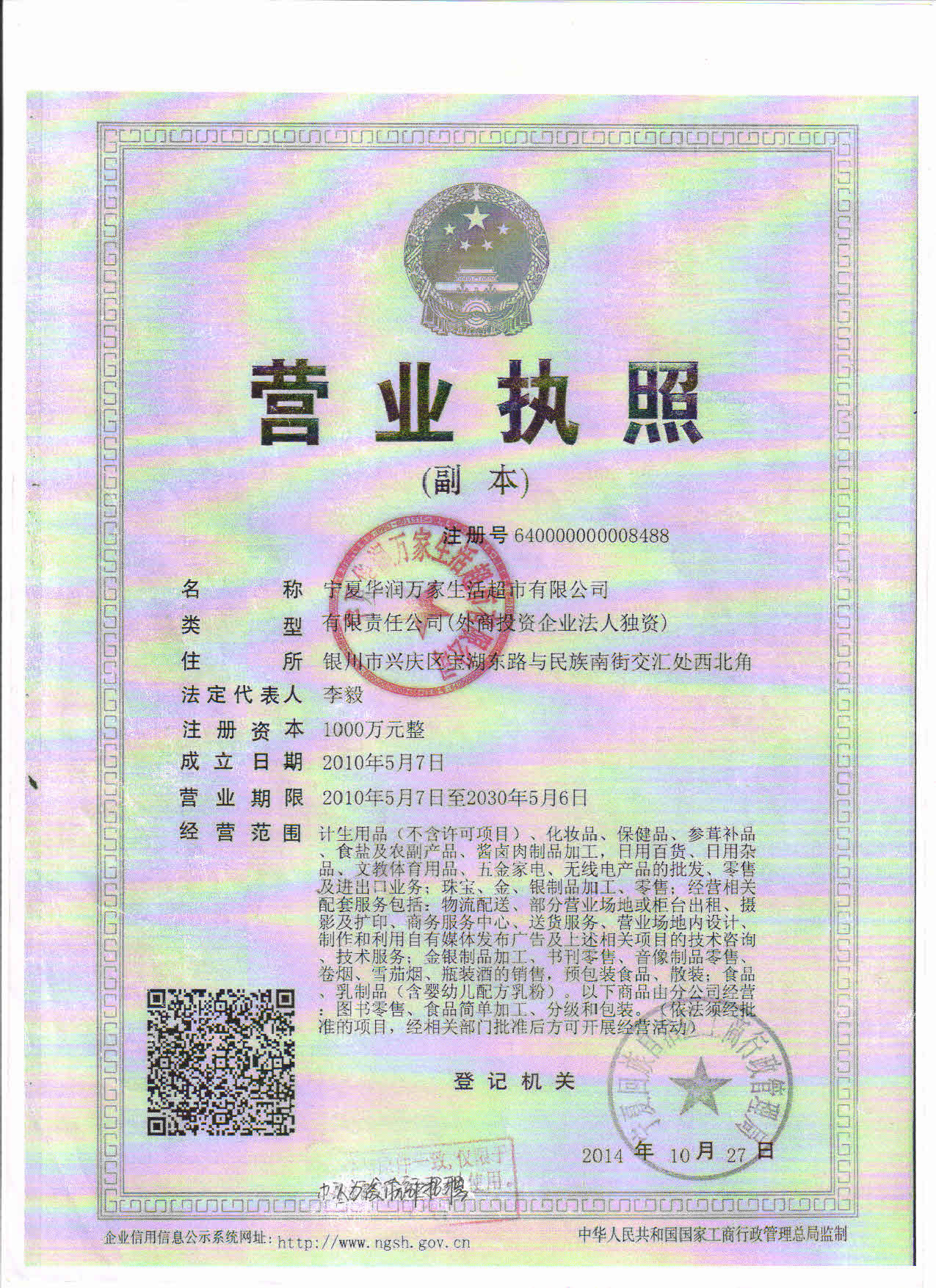 华润万家宁夏区目前在银川已开业门店5家,中卫1家,现招聘以下岗位: