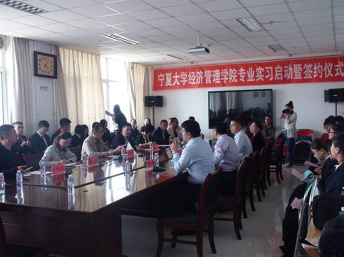 专业实习启动仪式暨签约仪式在文科楼902会议室召开。兴庆区党委副书记孔令杰,劳动就业局局长张玲等八位代表及麻将胡了2