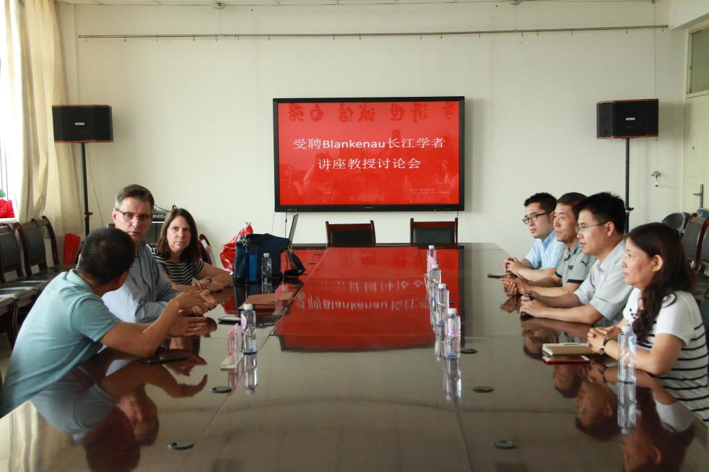 院长杨国涛教授、黄立军教授、东梅教授、仇娟东老师等参加会议。会议主要讨论了受聘长江学者讲座教授的基本条件,并与Blankenau教授进行了交流沟通,以期为后续受聘Blankenau长江学者讲座教授提供基础。