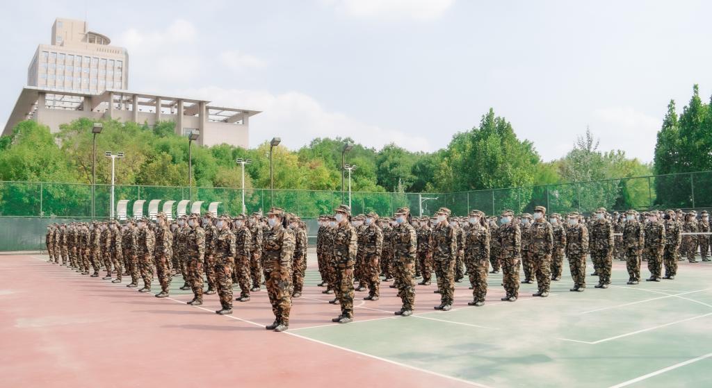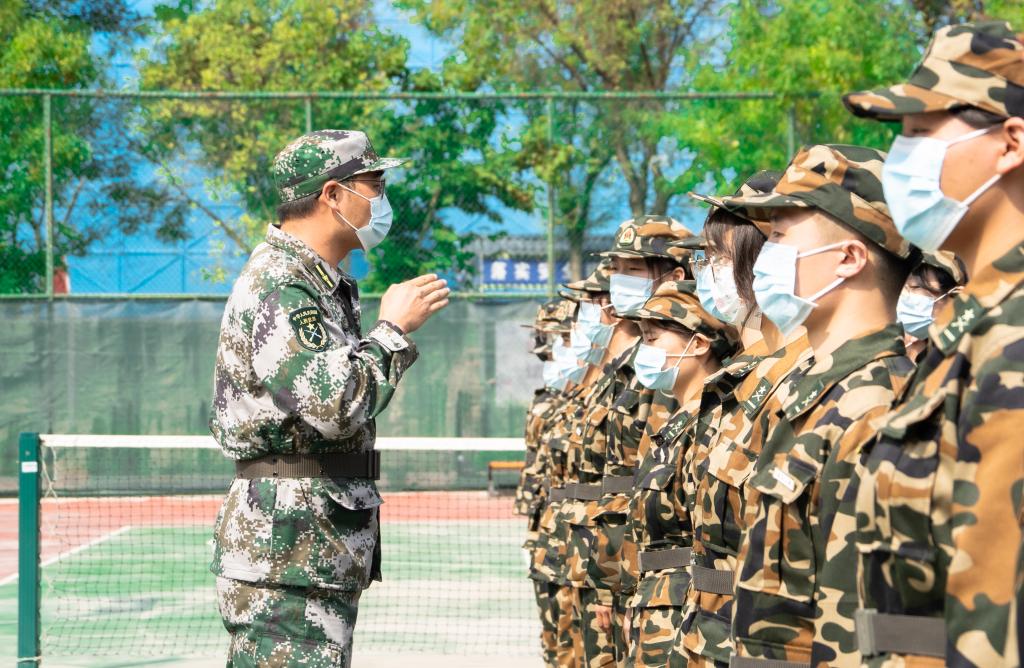 大学生退伍军人周晓虎担任教官,2021级全体本科生参加了军训。