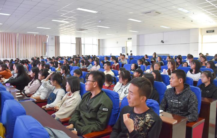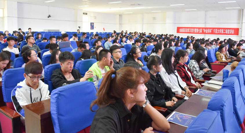 于贺兰山校区文荟楼东报告厅举行金融国民教育万里行暨第七届“中金所杯”宣讲会。本次活动由华龙期贷股份有限公司银川营业部研究员汤国霞主持,17、18级学生到场参加。