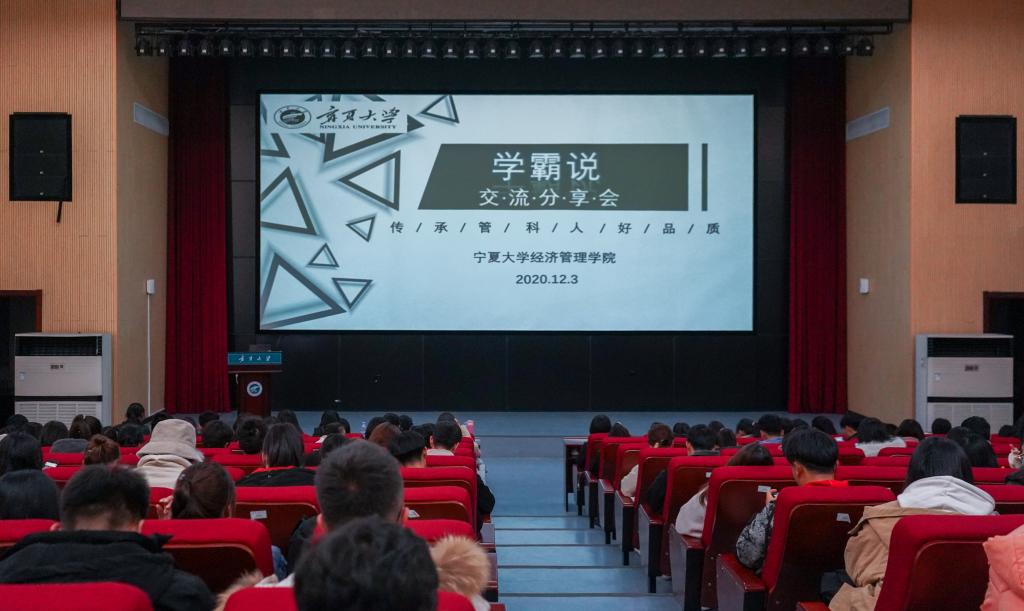 于科技综合楼一楼报告厅举行了以“学霸说”为主题的经验分享交流会。工商管理研究生新生陈娜娜、2017级物流管理专业付小娟、2017级工商管理专业杨百慧、 2017级市场营销专业李金凤轮流上台进行分享交流,工商管理系系主任蒋紫艳老师、工商管理系副教授张淑萍及麻将胡了2