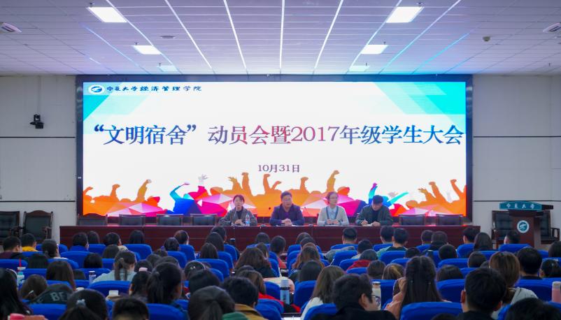 于贺兰山校区文荟楼东报告厅举行了“文明宿舍”动员会暨2017级学生大会。麻将胡了2