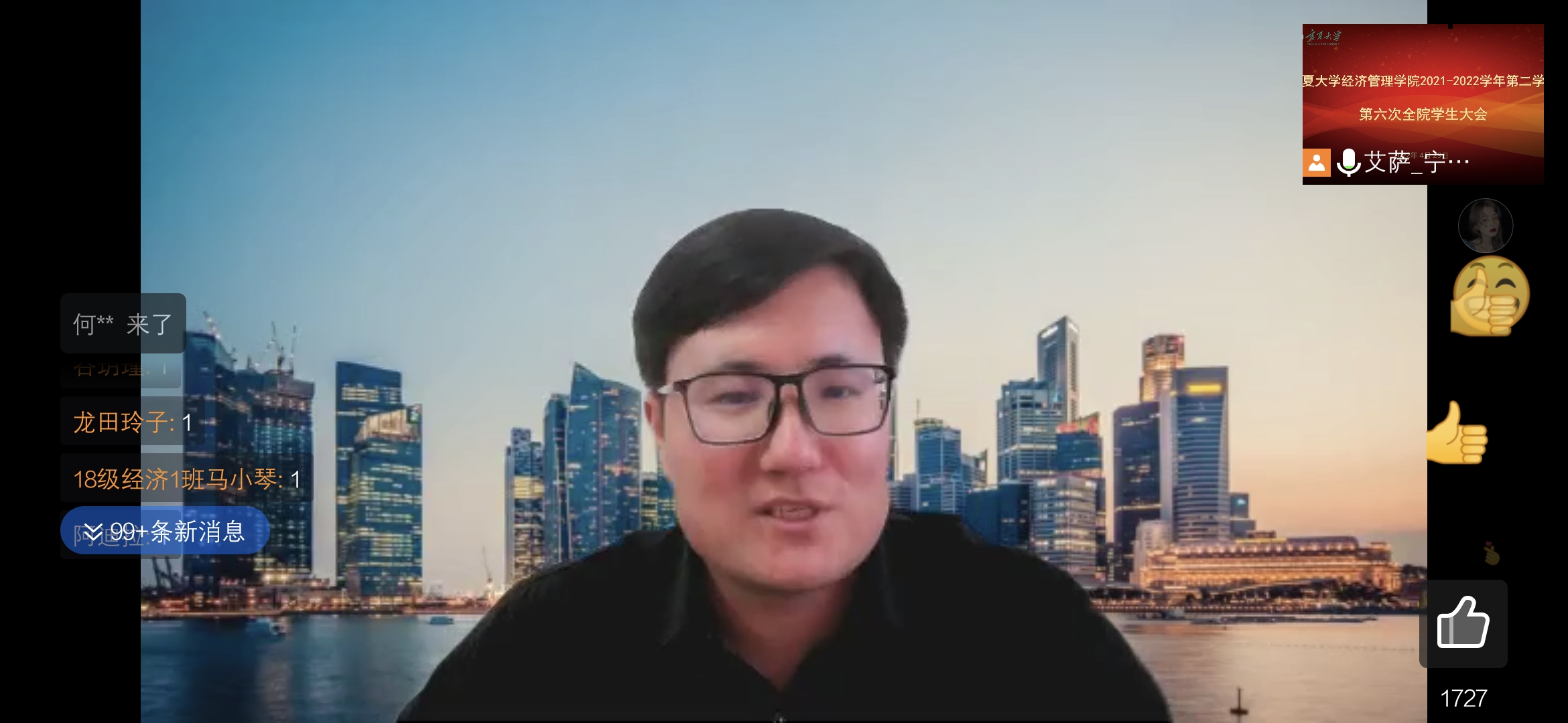 全体本科生和研究生参加了会议。会议由艾萨主持。