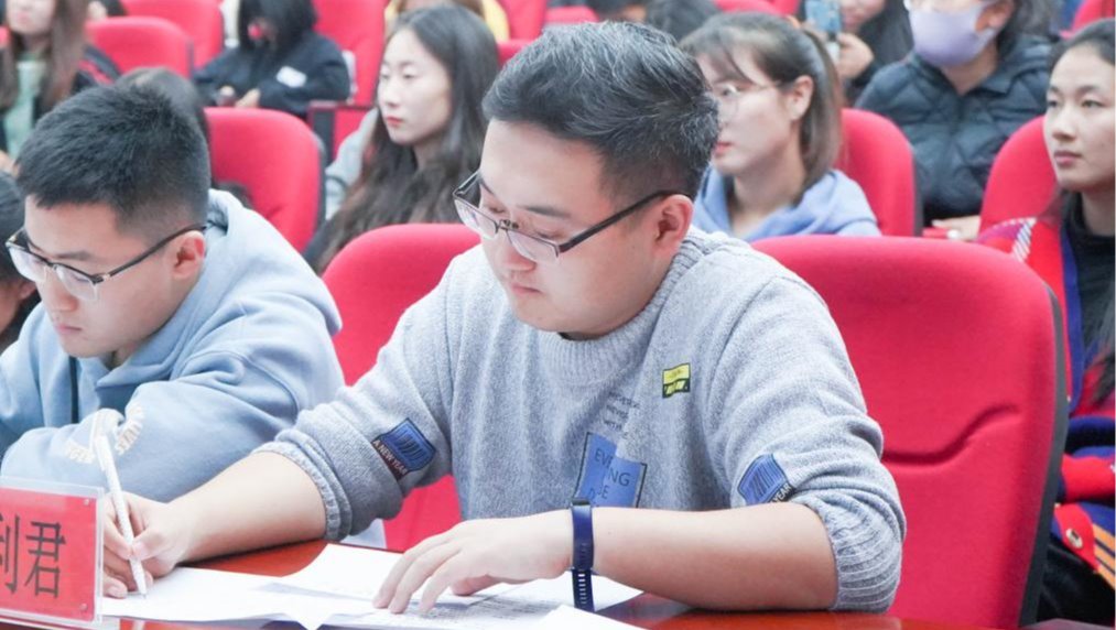 学生工作办公室负责人何韶华,2018级学生张珂尚、马利君、魏群担任评委,学院全体学生参与此次活动。
