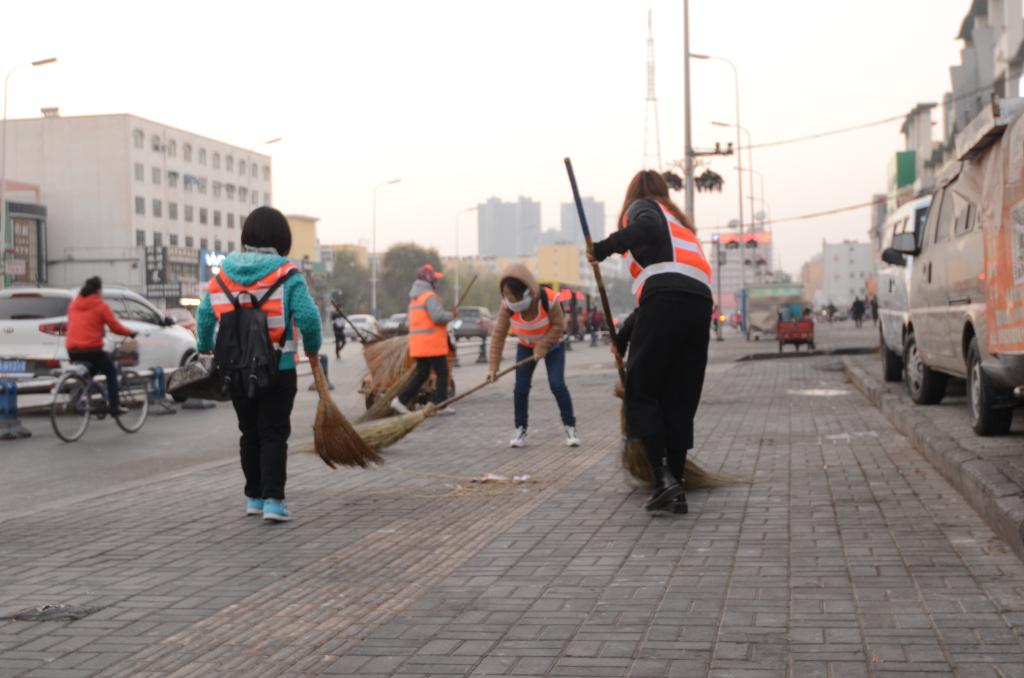 早上6点40分左右,夜色尚未褪去,马路上人车稀少,还未熄灭的路灯散发着微光,参与活动的建党对象已集合完毕,穿上橙黄色的环卫马甲,带着打扫工具整装待发。在环卫工人的带领与指导下,建党对象分为两组,分别对东、南两条街道进行清扫。虽已是寒冬,同学们的脸被冻得通红、手已经僵住,也不放过一片纸屑、一个瓶子。所谓众人拾柴火焰高,全体建党对象齐心协力、分工合作、互相帮助,整条街道在同学们的认真打扫下变得干净整洁,赢得环卫工人与过路人的称赞。天渐渐亮了起来,冬日的暖阳冉冉升起,环卫体验活动也接近尾声。最后,建党对象进行了拍照留念,活动圆满结束。