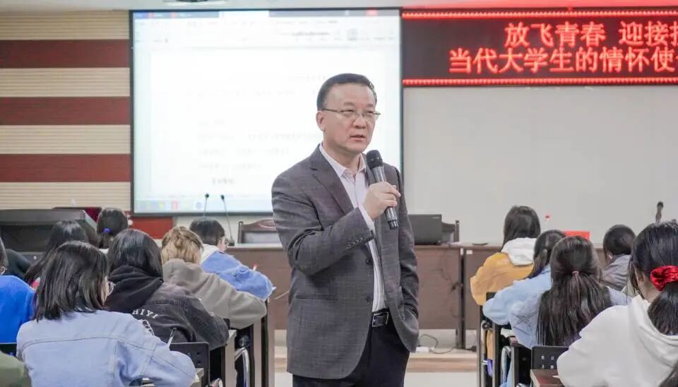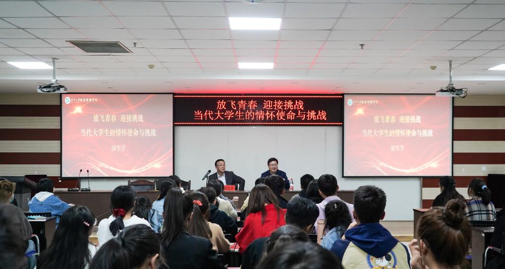 客座教授田生宇老师,在贺兰山校区文荟楼316教室做了“放飞青春,迎接挑战——当代大学生的情怀使命与挑战”的专题报告。学院领导、老师程胜利、何韶华及十三期青马班全体学员参与本次课程,报告由程胜利主持。