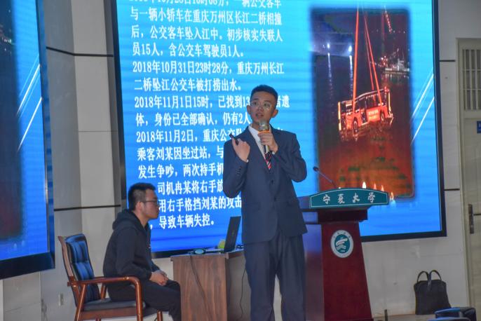 伴着安全月主题曲《错怪》,本次活动拉开帷幕。伊始,黄旭兴为安全月活动致辞,他以从教生涯亲眼所见的生动事例教导同学们增强安全意识,他说道,每一个人对于家庭来说都是百分之百。师辈之语,润物无声,令在场同学动容。