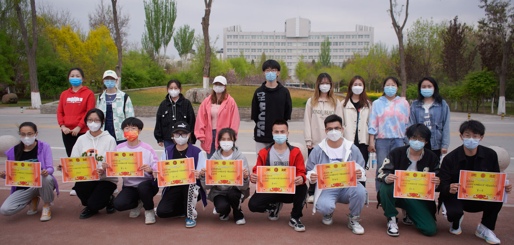 参赛班级同时在操场和金波湖旁健身跑道内进行多人接力赛。比赛过程中,同学们精神饱满,热情高涨,发扬了“友谊第一,比赛第二”的体育精神。经过激励的角逐,最终2021级工商管理类五班、工商管理类二班、工商管理类四班分别获得团体总分一、二、三名的好成绩。各班于活动最后进行了合影留念。