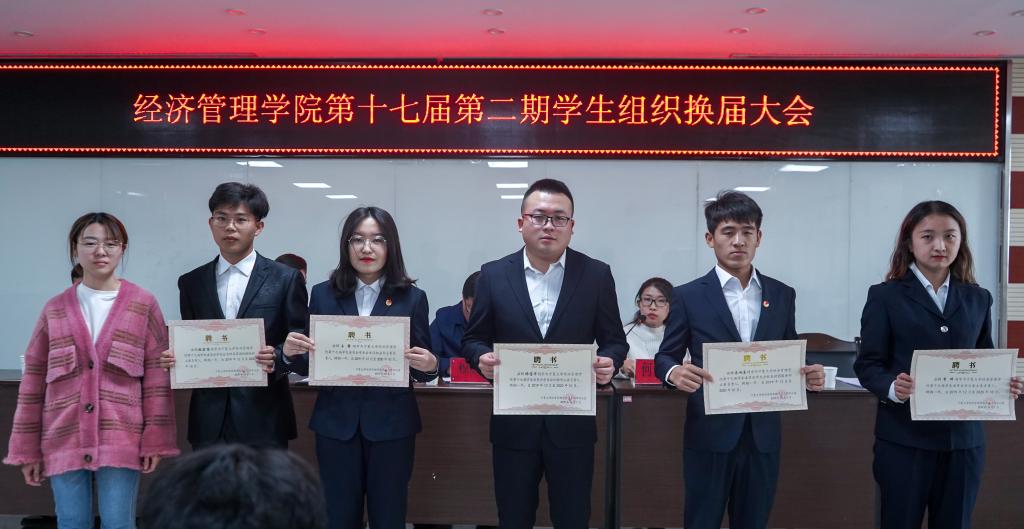 会议上,学院党委副书记程胜利为学生会主席团成员、学院团委副书记、网络思想政治工作中心副主任、社团联合会副会长颁发聘书;艾萨为团委(社团联合会)学生骨干代表颁发聘书;姚硕、孙文元为学生会(网络思想政治工作中心)学生骨干代表颁发聘书。
