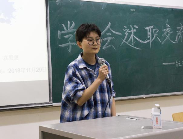 八位部长总结完毕后,牟玥颖对在座的干事进行了随机抽查提问,以考察同学们在此次会议中的收获情况。紧接着,各主席团成员就每位部长的述职情况、PPT制作等方面给出了详尽建议。而后,王嘉豫对此次会议做出总结讲话,她语重心长地说道,在场的每一位同学作为干事,应该时时刻刻严格要求自己,服务于同学,以此提升自己。至此,会议圆满落下帷幕。