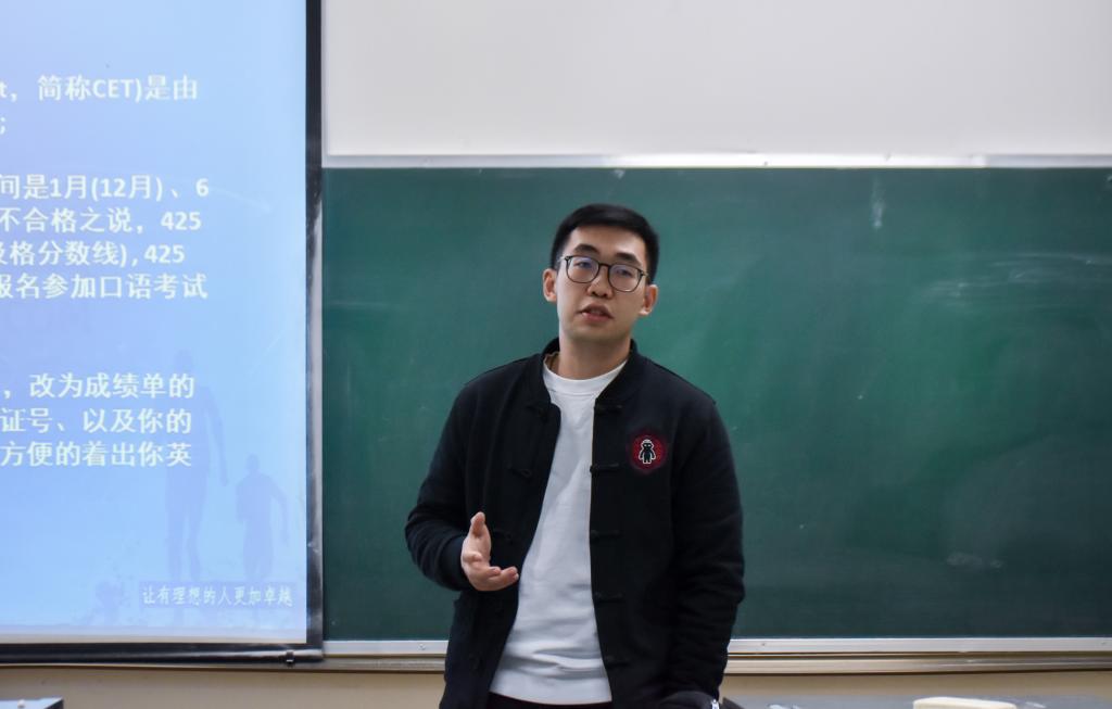 美国北德克萨斯大学博士张浩为同学们进行四六级讲座,解读新四六级改革后的考试特点。张浩介绍了四六级的备考方法及考试技巧,分享英语考前复习和自己学习英语的经验,帮助同学们提高复习英语的效率,并邀请本校学⻓学姐到场与学生一对一交流,解答同学们英语学习过程当中存在的疑惑和问题。