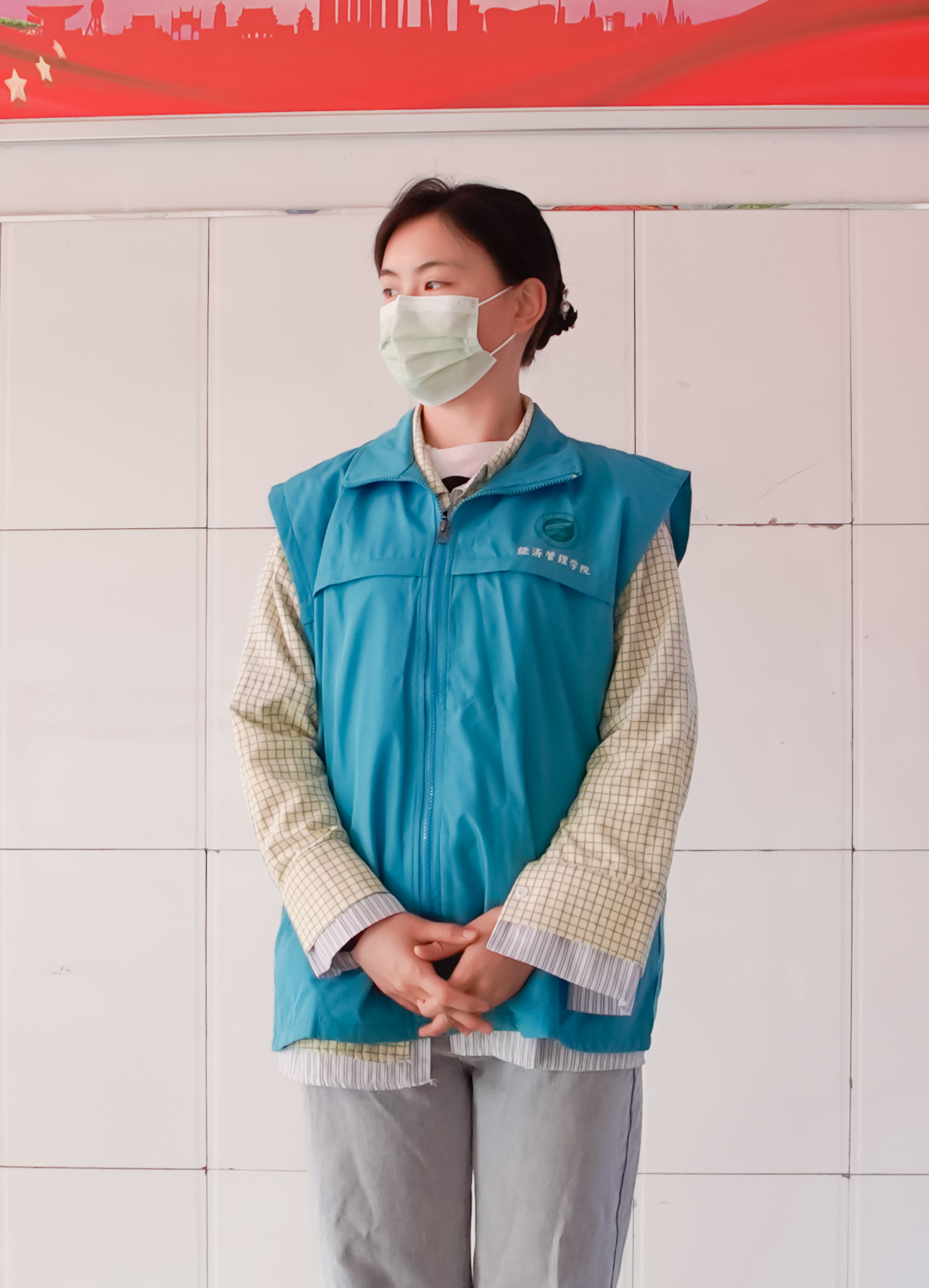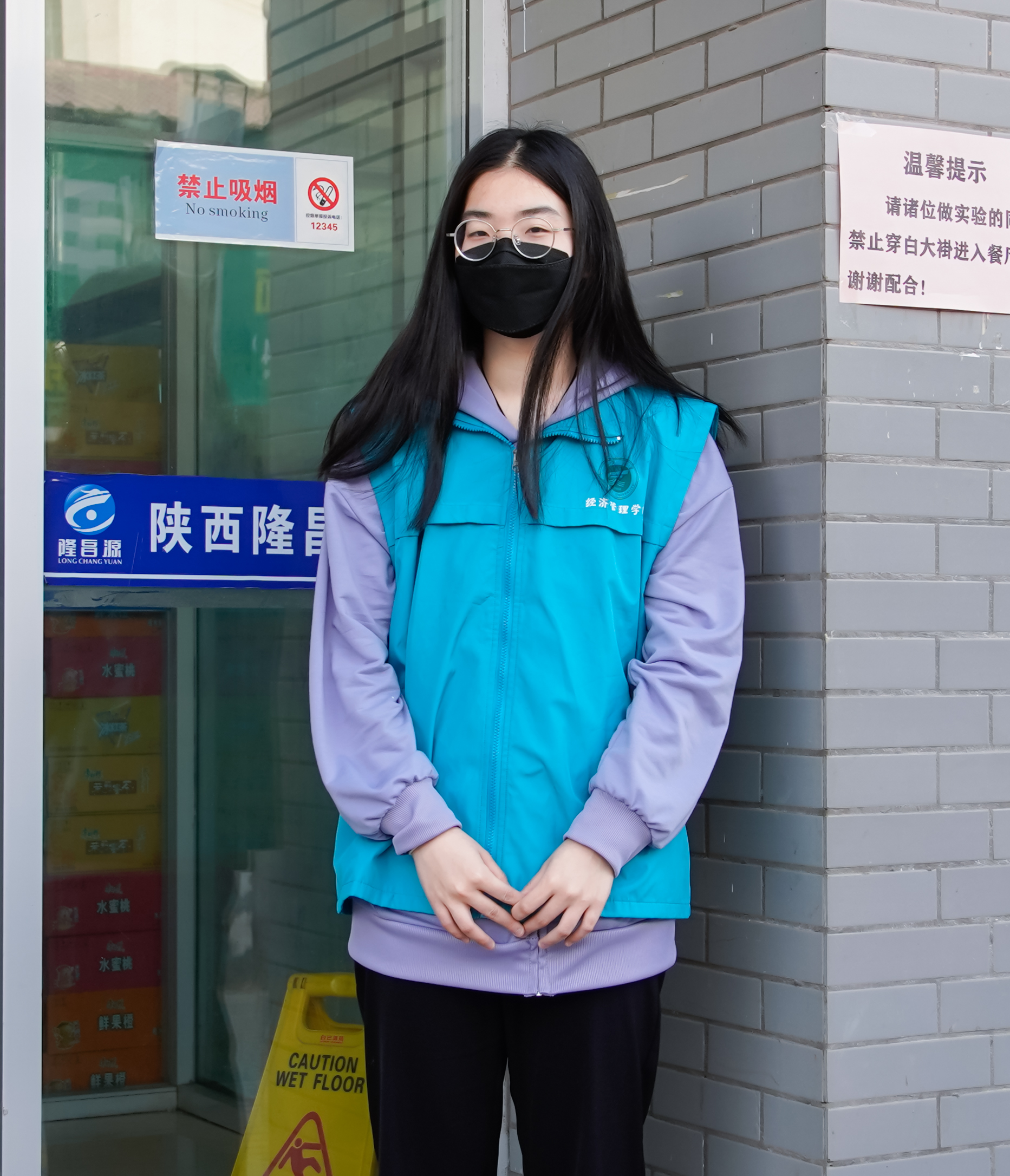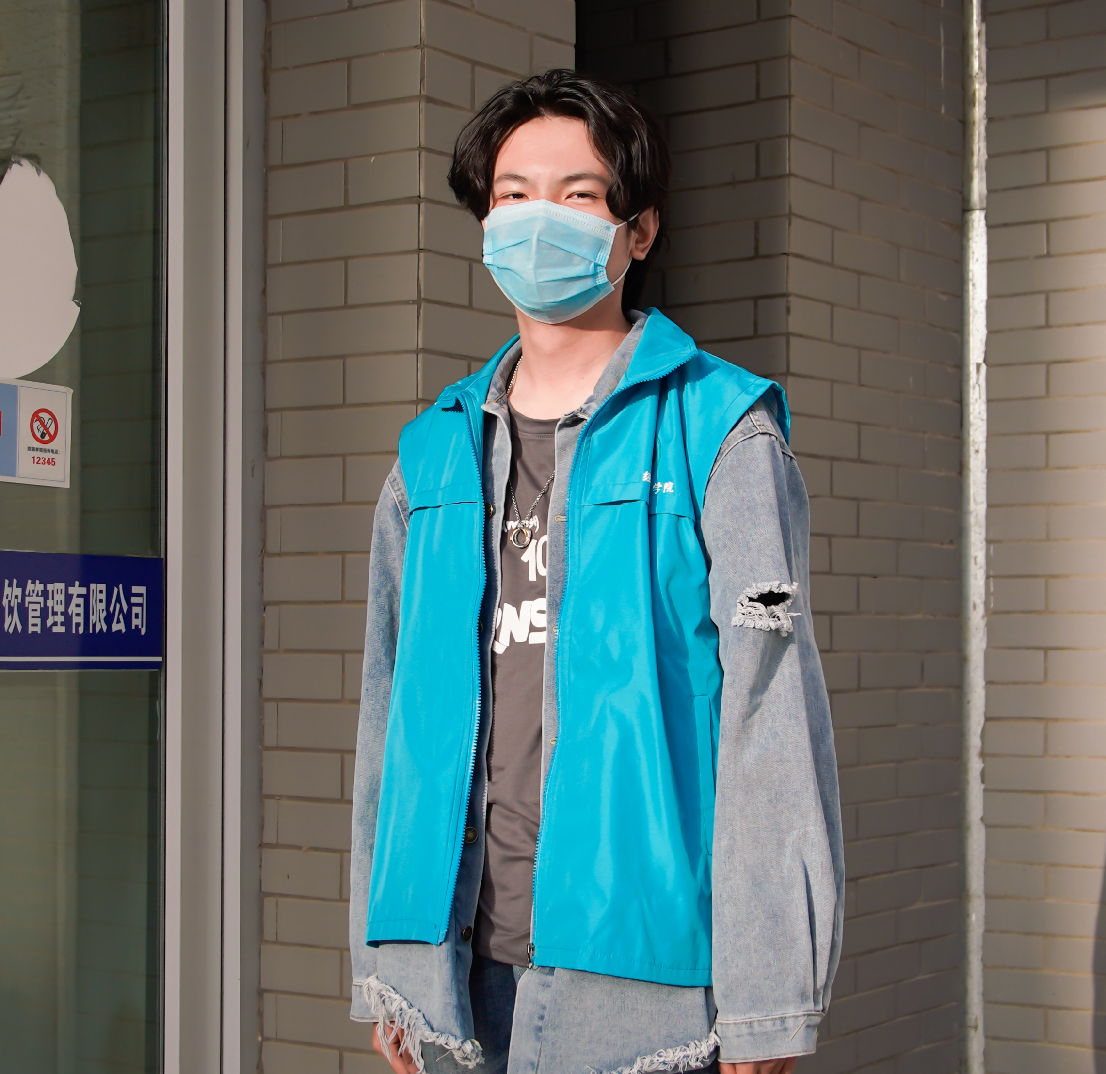 志愿者们积极响应防疫工作,在贺兰山校区餐厅门口巡检进出学生口罩佩戴情况,营造了科学防治,理性应对的防疫抗疫氛围。