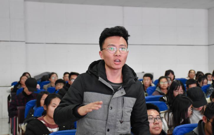 李龙翔则与同学们分享了自己多年来的学习生活经历。在向同学们介绍了“互联网+”、“挑战杯”等创新创业赛事后,他结合自身参赛获奖经验鼓励同学们努力学习专业知识,做到厚积薄发,为今后的创新创业打下坚实的基础。在观众提问环节中,同学们就自己所关心的问题向两位主讲嘉宾提问,殷俊锋和李龙翔从不同的侧重点为大家做了细致解答。
