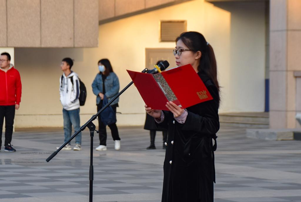 各系办公室主任、专业负责人和教师代表及全体本科生、研究生参加了此次仪式。仪式由学生工作办公室负责人何韶华主持。