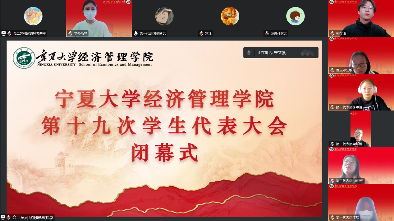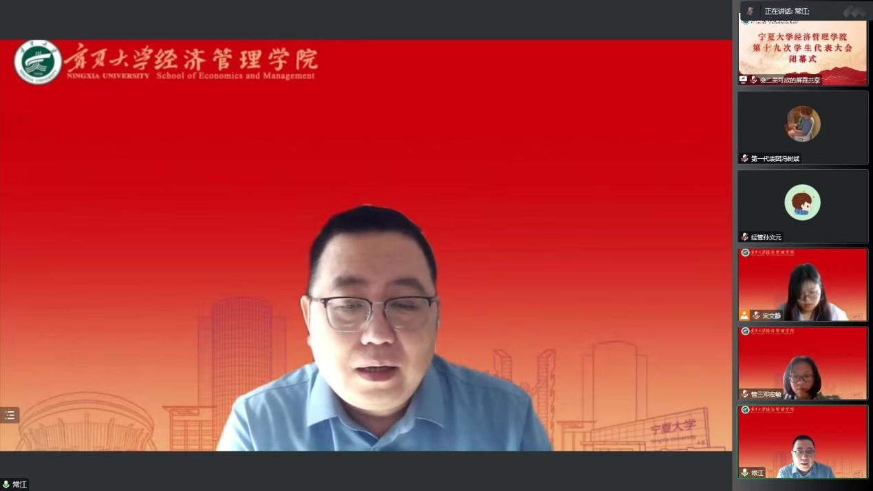 十二时二十分,第十九次学生代表大会闭幕式顺利举行,麻将胡了2 (西部发展研究院)党委书记崔明堂、麻将胡了2 (西部发展研究院)党委副书记常江、黄旭兴、学生工作办公室负责人艾萨·阿尤普、团委副书记孙文元、2021级辅导员老师姚硕出席会议,闭幕式由宋文静主持。