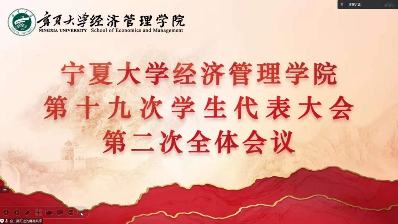 上午十一时,麻将胡了2 通过线上腾讯会议方式召开麻将胡了2 第十九次学生代表大会第二次全体会议。麻将胡了2 (西部发展研究院)党委书记崔明堂、麻将胡了2 (西部发展研究院)党委副书记常江、黄旭兴、学生工作办公室负责人艾萨·阿尤普、团委副书记孙文元、2021级辅导员老师姚硕出席会议,会议由宋文静主持。