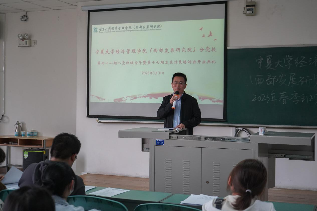 (西部发展研究院)分党校2023年春季党课开班仪式于贺兰山校区文荟楼230教室顺利举行。麻将胡了2