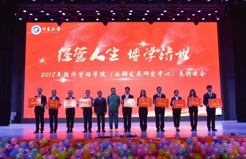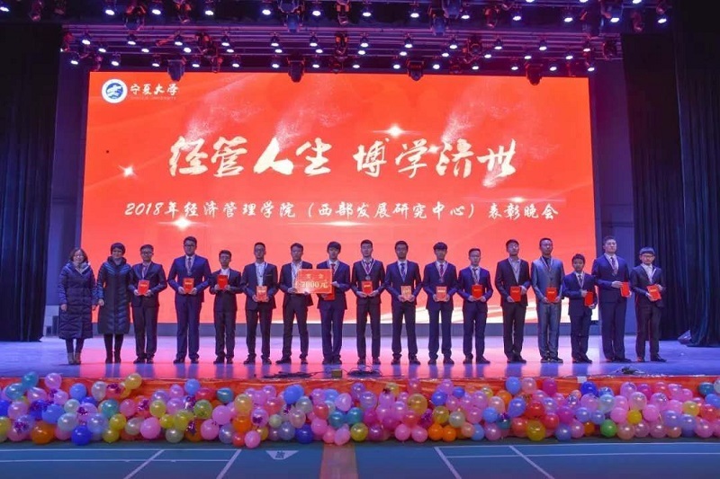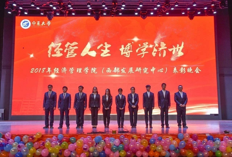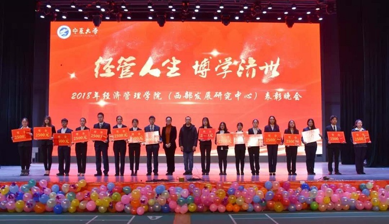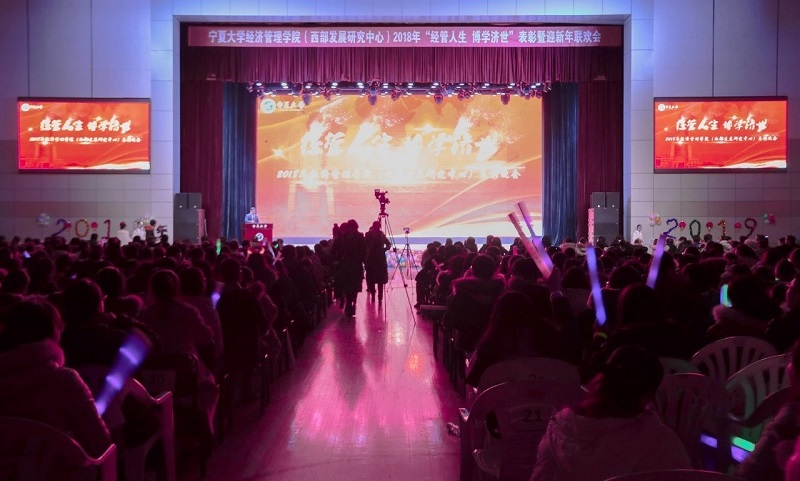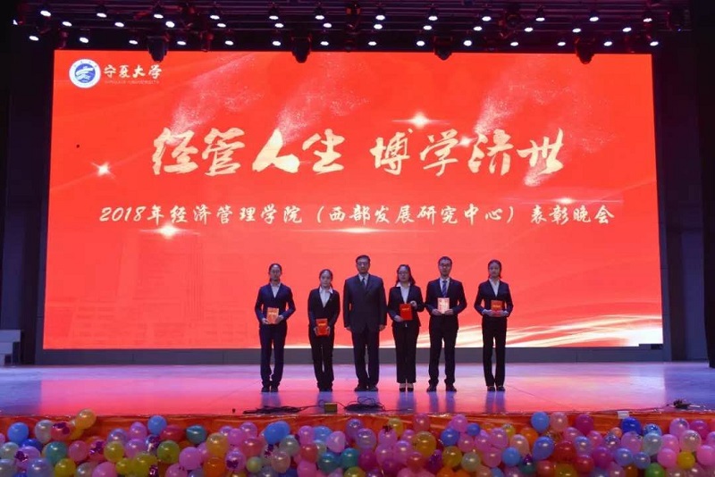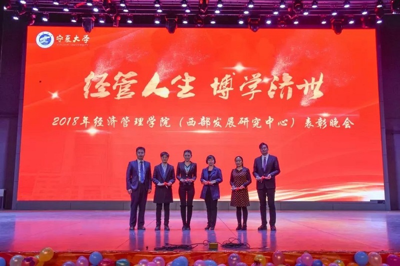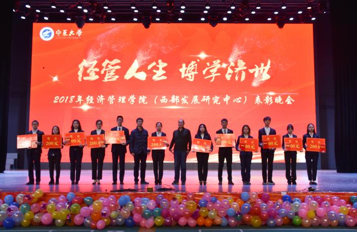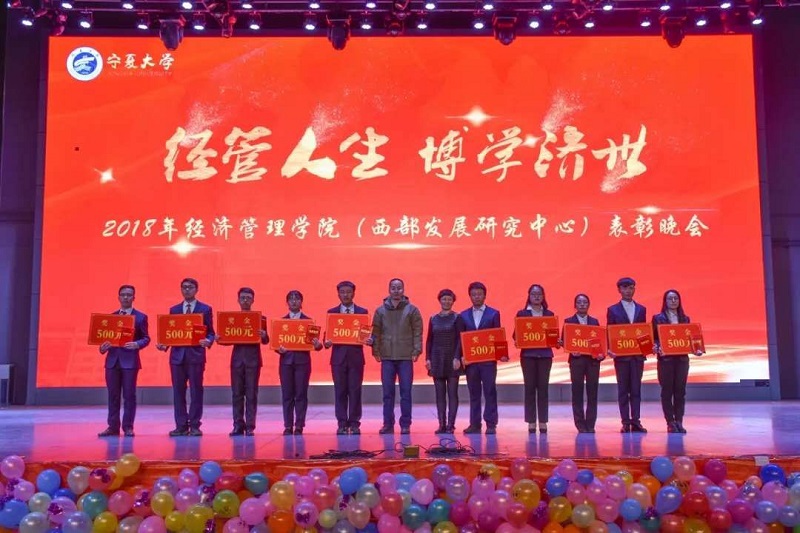 (西部发展研究中心)2018年“经管人生,博学济世”表彰暨迎新年联欢会在文萃校区大学生活动中心隆重举办。特邀嘉宾宁夏康百行销公司市场处主管王宁、银川营业部部长周建军,贵州茅台酒宁夏经销商联谊会代表、银川新华百货连锁超市有限公司总经理周志红、贵州茅台宁夏回族自治区代表张仕飞,麻将胡了2