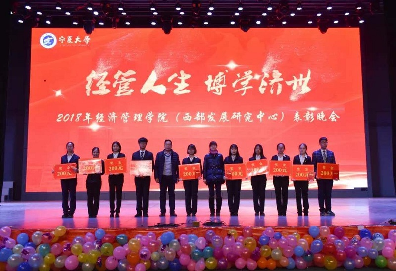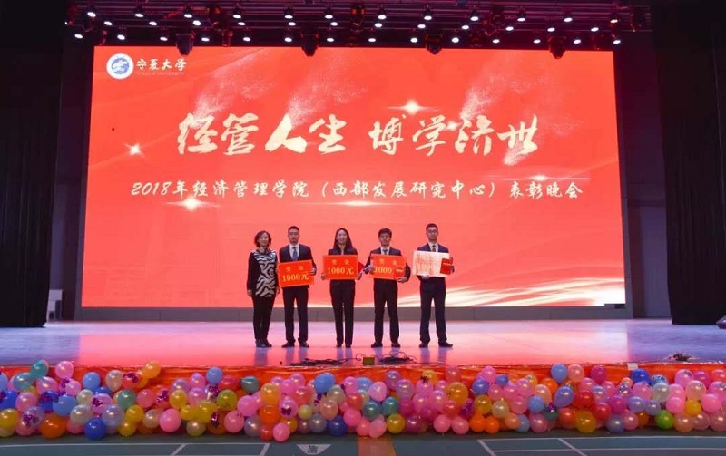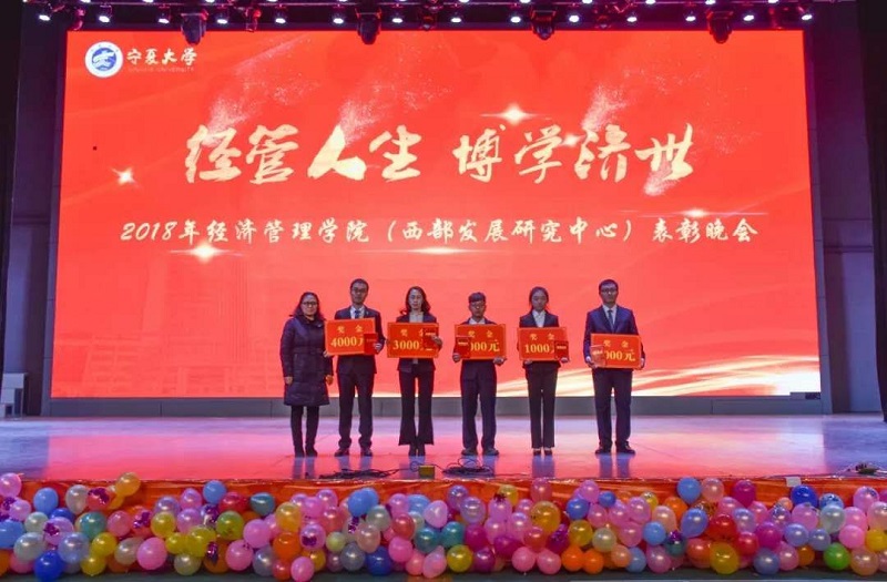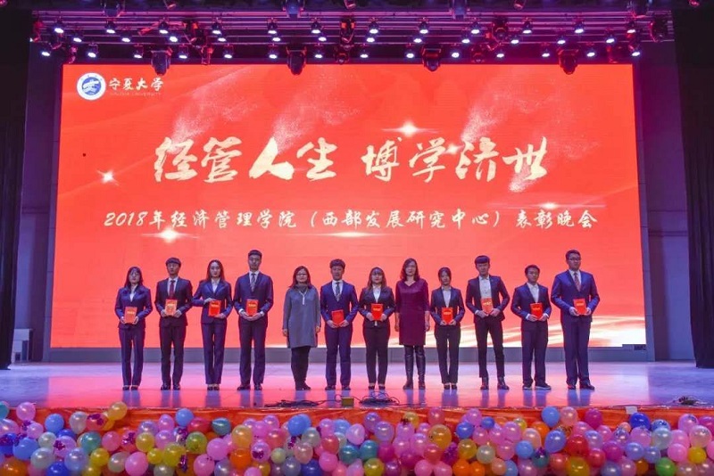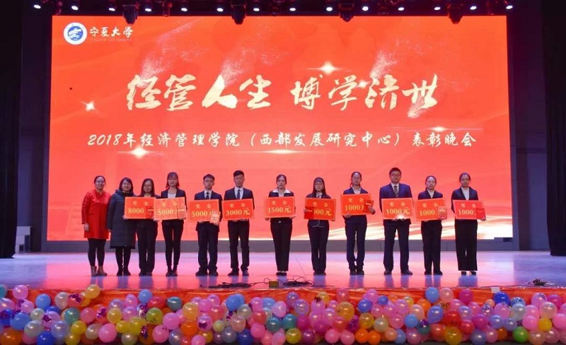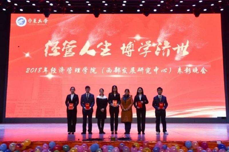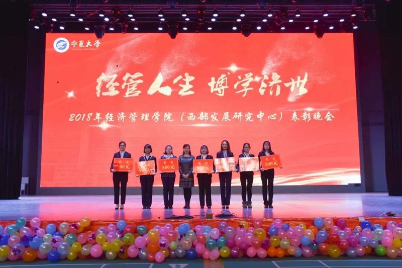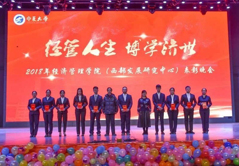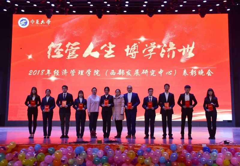 (西部发展研究中心)2018年“经管人生,博学济世”表彰暨迎新年联欢会在文萃校区大学生活动中心隆重举办。特邀嘉宾宁夏康百行销公司市场处主管王宁、银川营业部部长周建军,贵州茅台酒宁夏经销商联谊会代表、银川新华百货连锁超市有限公司总经理周志红、贵州茅台宁夏回族自治区代表张仕飞,麻将胡了2