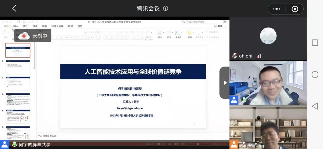 2022年3月24日下午4:00,麻将胡了2 塞上经济–青年学术论坛以线上腾讯会议方式顺利举办。麻将胡了2诚邀三峡大学麻将胡了2 青年学者何宇博士分享其最新研究成果《人工智能技术应用与全球价值链竞争》,该成果发表于《中国工业经济》。本次会议由麻将胡了2教师郭飞主持,校内外众多师生线上参与。本会议为塞上经济·青年学术论坛总第一期。