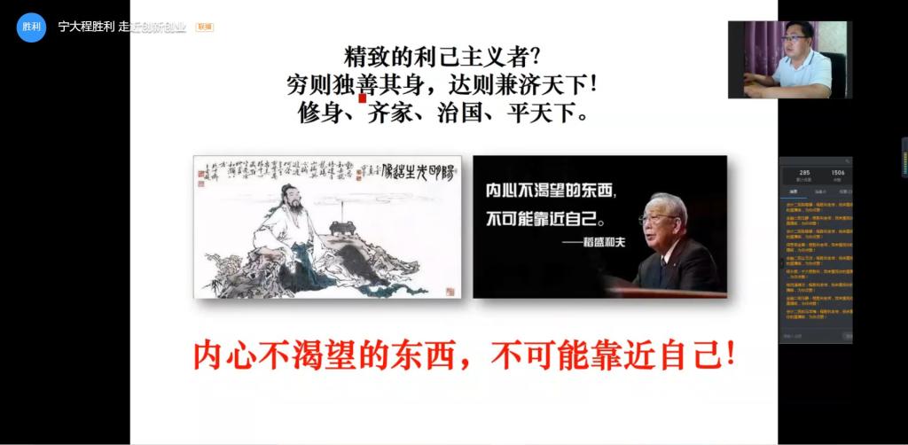 最后,程胜利鼓励同学们像一名优秀的企业家一样生活,拥有强烈追求成就的欲望,不断挑战、不断超越,做不一样的自己。此次讲座让同学们深切体会到什么是创新创业,了解了企业家们背后的成功秘诀,树立科学的创新创业观。希望同学们能带着目标明确、敢闯敢拼、主动作为的思维去进入职场,在迷茫期尽快树立自己的目标,以独立的人格屹立于异彩纷呈的世界。