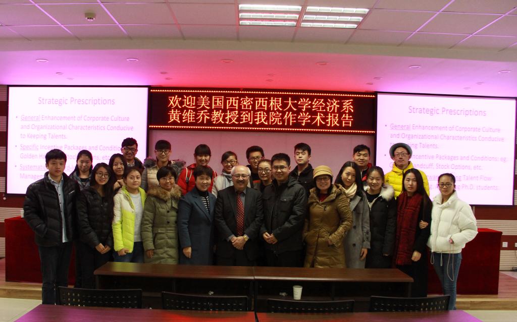 12月26日下午,美国富布赖特学者、西密西根大学经济系黄维乔教授应邀用英文为麻将胡了2