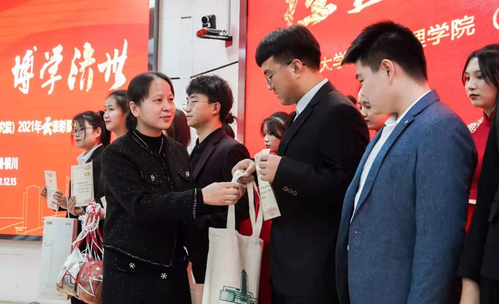 张逸、仇娟东分别为本科生和研究生获奖团体及个人颁奖,获奖代表上台领奖。会场上响起了热烈的掌声。