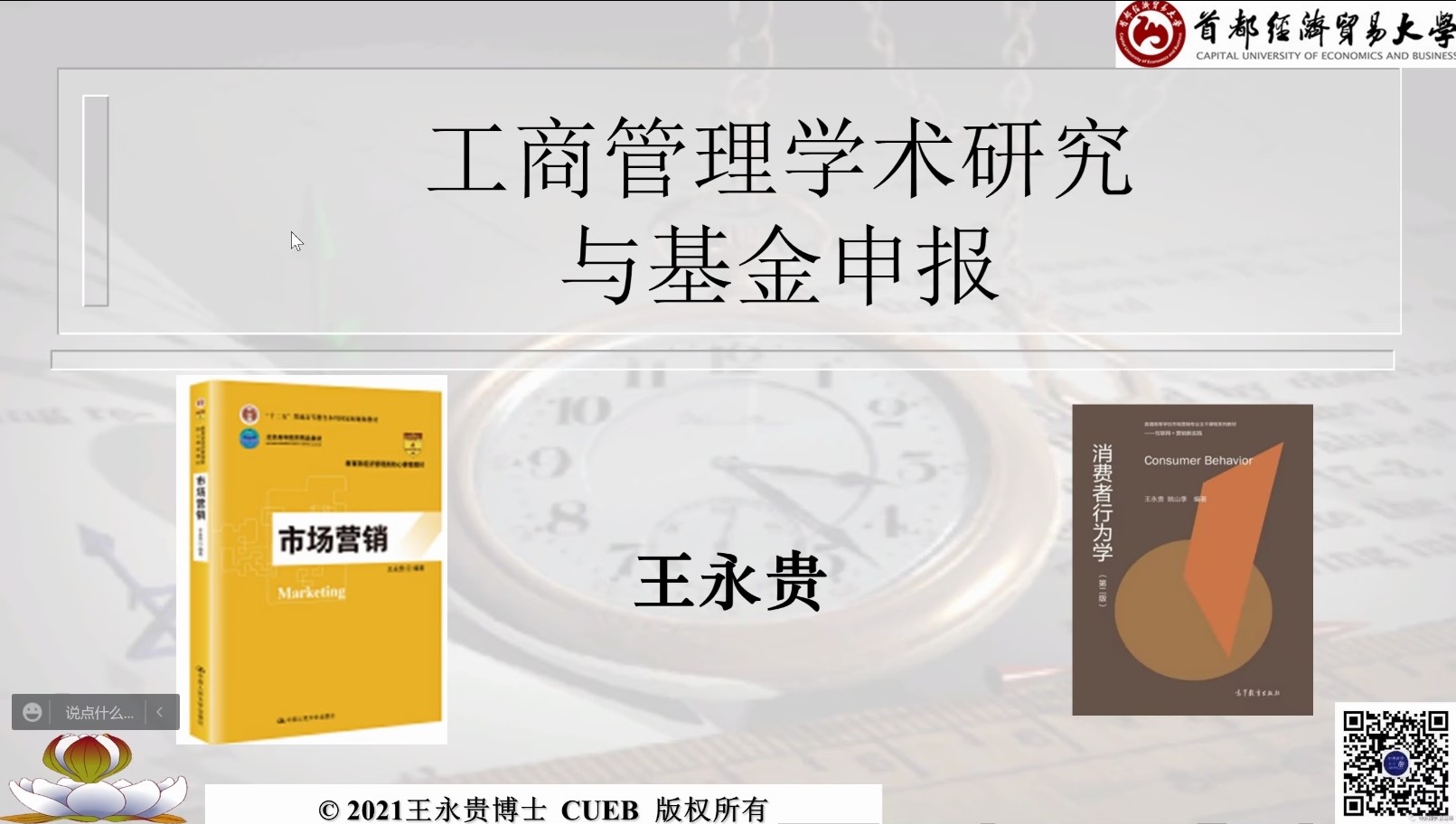 数字经济与智慧管理研究院联合主办的“工商管理类学术研究与基金申报”的线上辅导会成功举行。本次讲座邀请到了首都经贸大学副校长、 博士生导师、教育部工商管理类专业教职委委员、国务院学科评议组专家、国家有突出贡献中青年专家王永贵教授作主讲嘉宾。会议由冯蛟院长主持。
