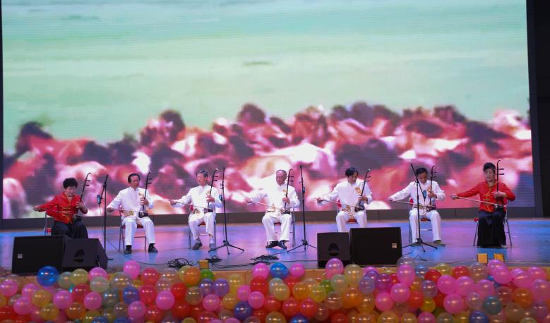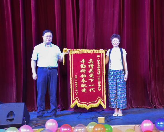 关心下一代工作委员会赠送了“真情关爱下一代,辛勤耕耘奉献爱”为字样的锦旗。接着,精彩的表演开始。老教师艺术团民乐队用精彩绝伦的民乐合奏《红花遍地开》、《宁夏数花》拉开了晚会的序幕。新老交替的表演,既有传统文化醇如佳酿的韵味与厚度,又有现代文化多元、激昂而又热情奔放的灵魂;既有国粹精髓——京曲《我的故乡是北京》,又有动感十足的鼓点与青春洋溢的舞步交织而成的爵士舞《Danceholic》;舞蹈《婆婆喜学健身操》、宁夏说唱《规矩与方圆》让我们感受到了来自退休老教师的活力;气势恢弘的二胡重奏《战马奔腾》与丝笛重奏《傣家欢歌》绕梁三日;现代舞《情书》和情景剧《绽放青春》让人感概万千;演出中,既有老一辈人对下一代的期盼,又有新一代对老一辈人的敬爱……表演在经管合唱团以歌曲形式对母校和全体观众的真挚祝福声中落下帷幕。表演结束后,领导嘉宾与工作人员合影留念。