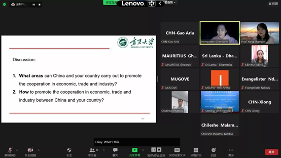 围绕中国农村精准扶贫的成功经验和典型案例,为来自不同发展中国家的政府官员详细讲解了中国农村精准扶贫的内涵特征、主要原则、实施路径、重点工作、经典案例,最后基于巴西、印度的案例剖析,结合中国经济发展的实际,为发展中国家政府官员分享了精准扶贫的中国方案和中国智慧。讨论互动期间,重点讨论了中国援外投资项目的成功经验、中国如何巩固拓展脱贫攻坚成果,乡村振兴工作的实施情况,以及经济发展与环境保护间矛盾等问题。