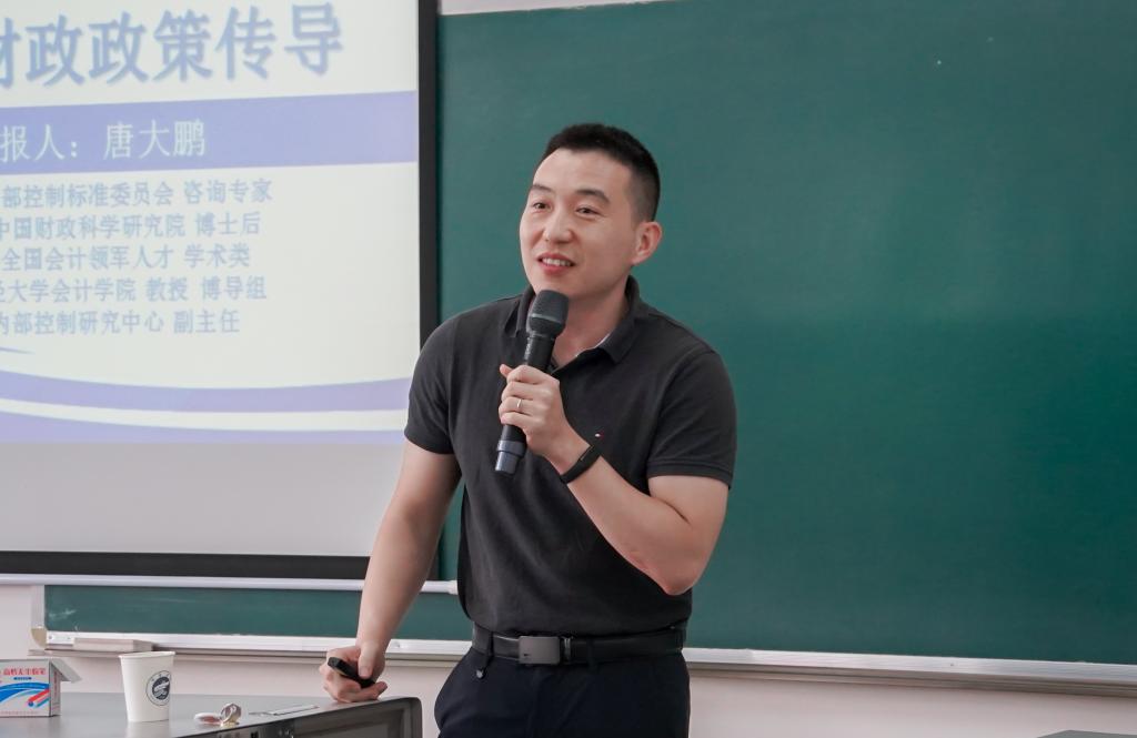 唐大鹏教授以近年来部分知名企业发展遇到的问题为引,提出了他此次报告的主题“中国内部控制体系研究与财政政策传导效应”,介绍了内部控制的概念、政策、理论,详细讲述了关于内部控制的政策传导与实践应用,并对相关案例进行了分析。