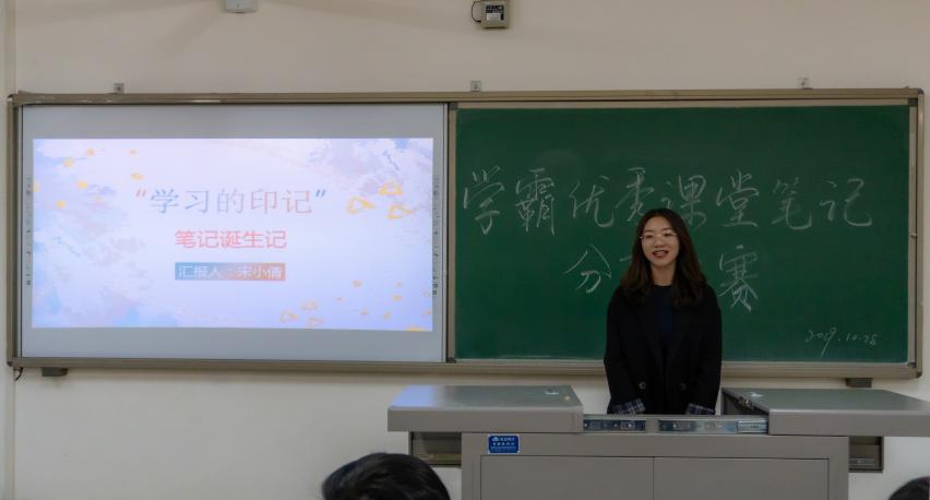 本次决赛采取PPT展示的方式进行,参加本次决赛10位参赛选手是经过层层选拔,从报名参加优良学风建设系列活动之“学习的印记”优秀课堂笔记分享大赛的所有作品中脱颖而出的晋级者。在主持人对评委简单介绍后,选手们有序上台进行PPT展示,第一位选手是来自18级经济学金融(1)班宋小倩,落落大方的举止言谈,面面俱到、简洁明了的笔记内容赢到了同学们的一致好评。后面的选手也不甘示弱,或以幽默风趣的语言,或以从容自若的发挥,或以别具一格的笔记内容,各有千秋。评委们对每位选手都给予了充分肯定,并从笔记内容、PPT形式和举止言谈等方面对症下药,一一指出了讲解过程中存在的问题。战罢,主持人作了总结陈词。