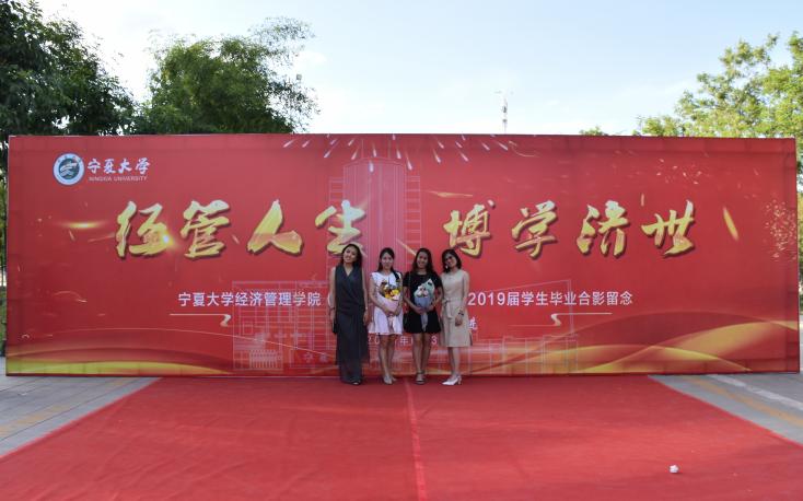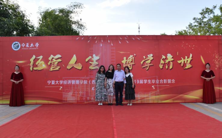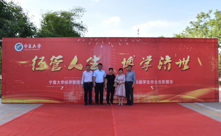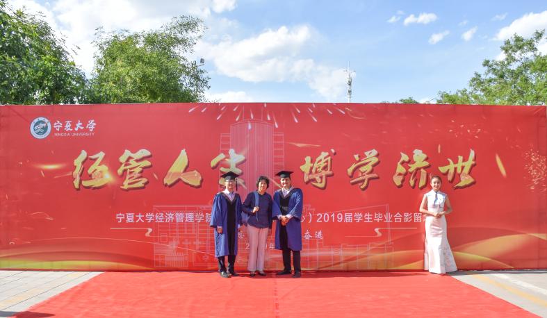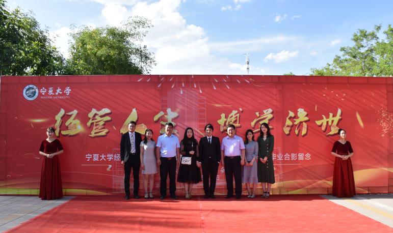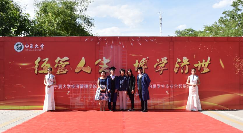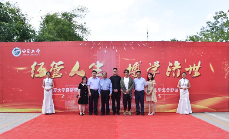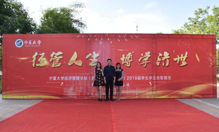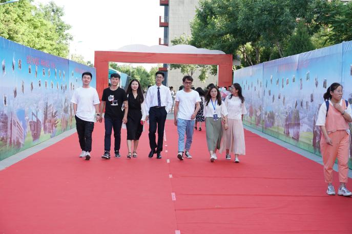 红毯两侧的背板墙上书写着习近平总书记对青年人的美好期待,张贴着经管学子大学学习生活中的精彩相片,记录着每位经管人的难忘华章。