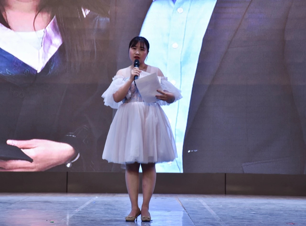 院学生会主席、在校生代表牟玥颖代表全体在校生对即将离开母校的学长学姐们致以最诚挚的祝福,不舍留恋之情沁人心田。