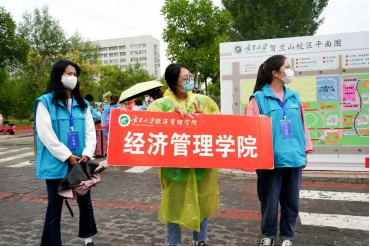 浓厚的迎新氛围。让家长见证2022级新生安全的迈入经管人生号第一站!