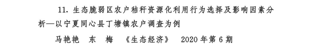 马艳艳、东梅所著论文《生态脆弱区农户秸秆资源化利用行为选择及影响因素分析——以宁夏同心县丁塘镇农户调查为例》荣获二等奖;