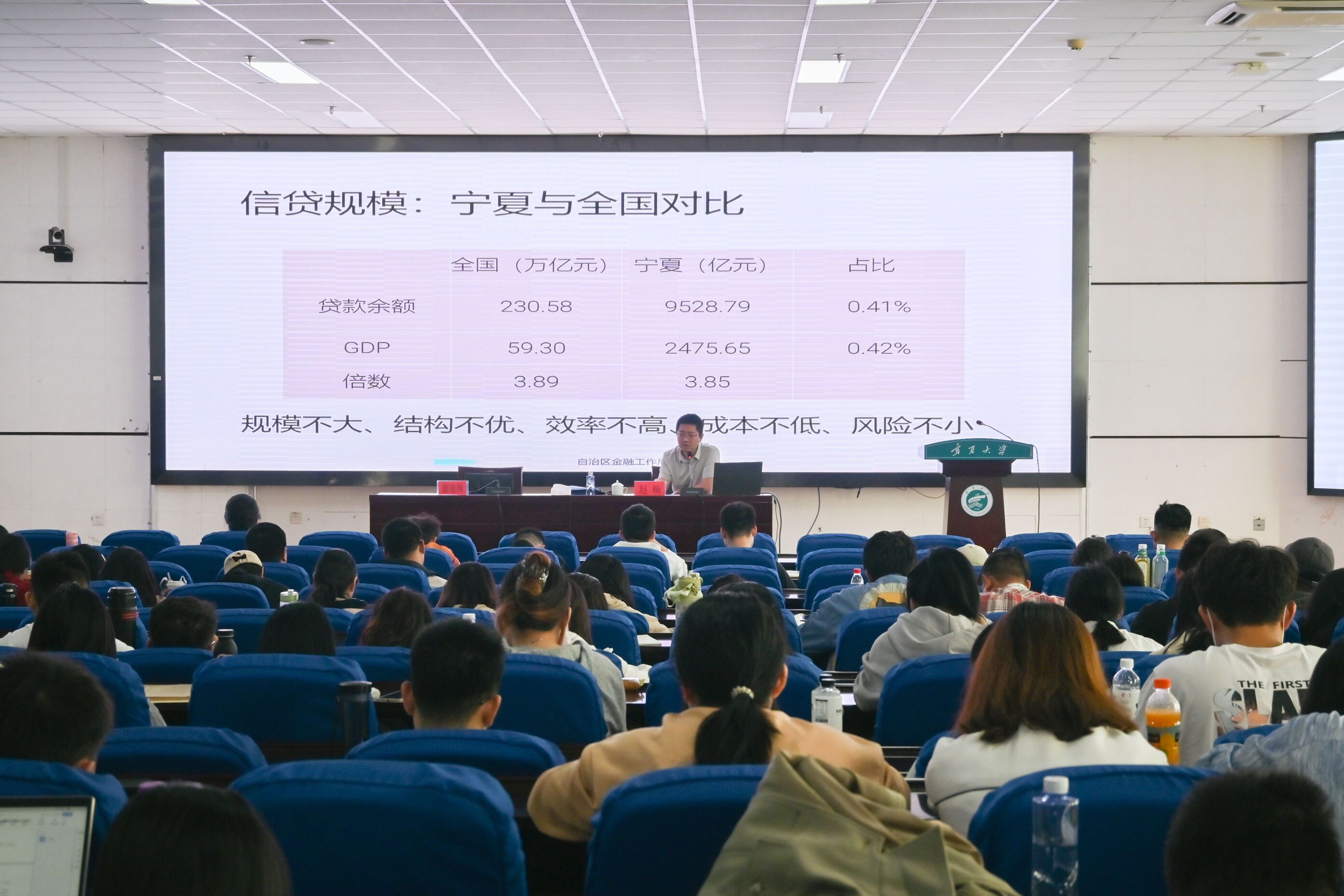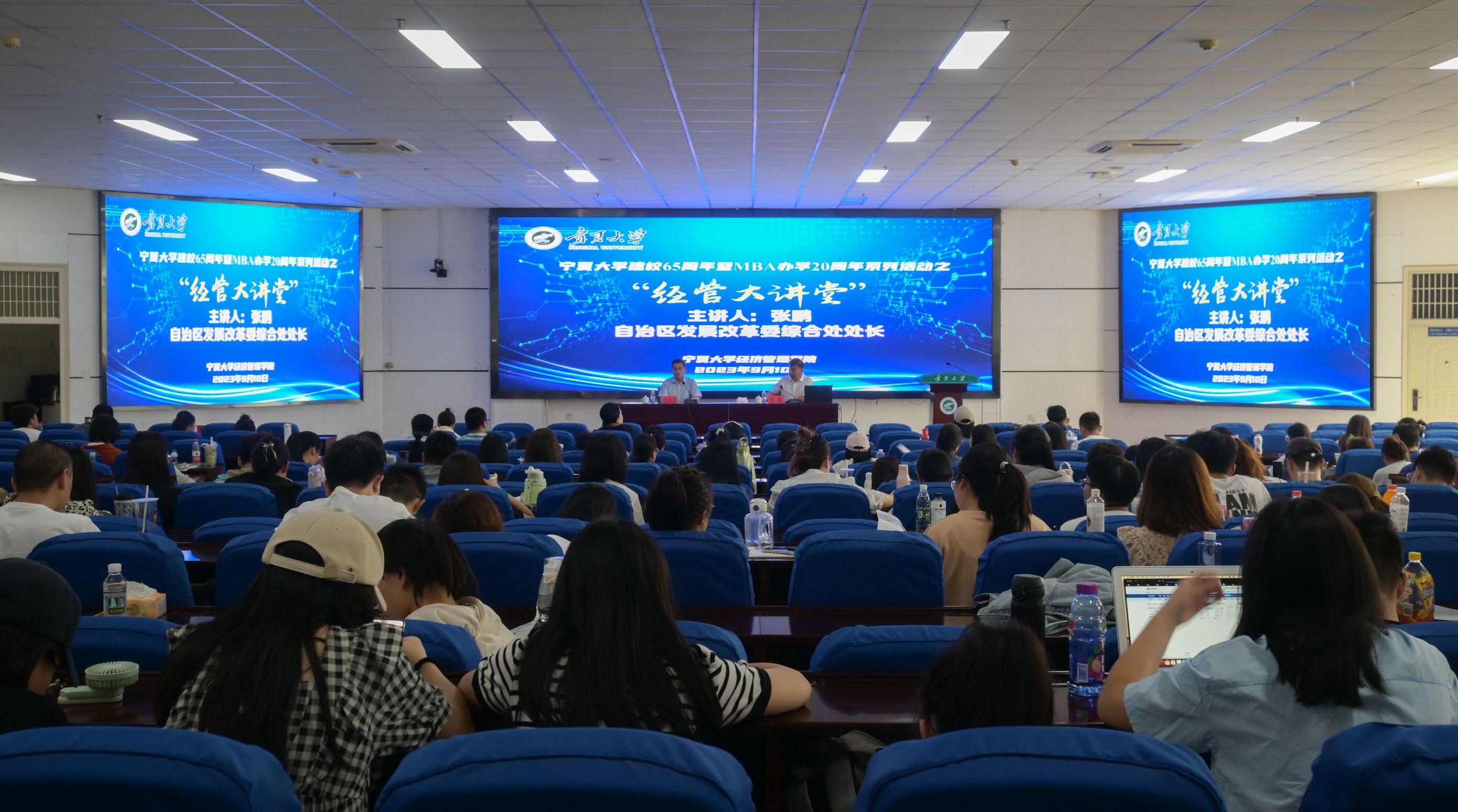 建校65周年暨MBA办学20周年系列活动在贺兰山校区文荟楼东报告厅举行。自治区发展改革委地区处调研员、经济学研究员余登波,宁夏银行党委书记、董事长沙建平,百瑞源枸杞股份有限公司董事长郝向峰,自治区地方金融监管局办公室主任赵楠,自治区发展改革委综合处处长张鹏等,作系列报告。麻将胡了2