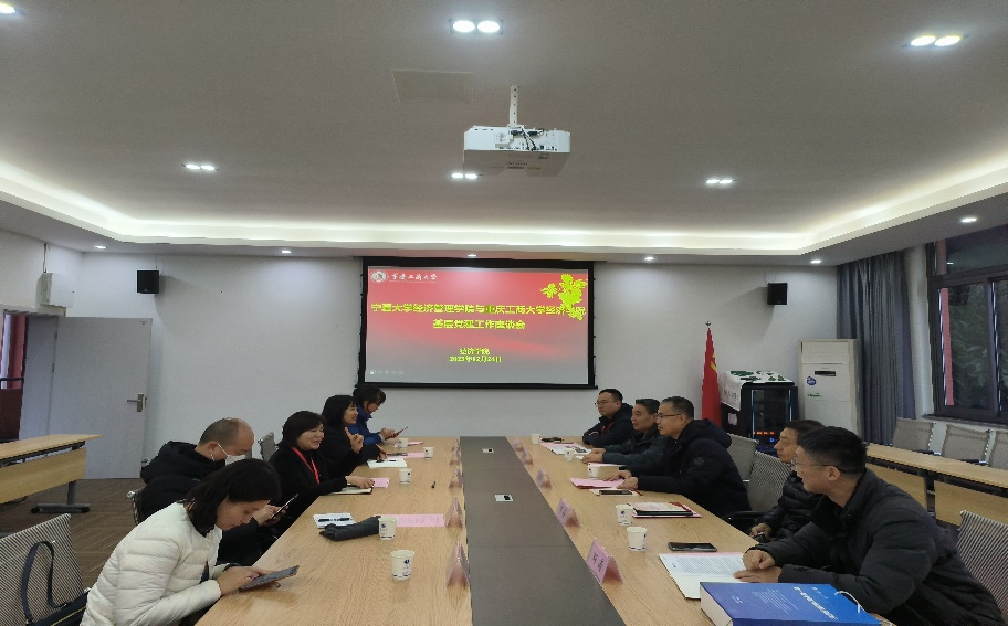杨国涛院长及四个教工支部书记针对高校党建工作标杆院系、基层样板党支部建设、防企脱岗促就业和工会活动等内容展开深入交流和研讨。通过交流学习,明确了双方进一步合作的内容。