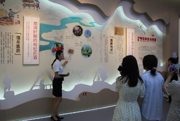 最后,我们来到了以养生文化为主题的宁夏百瑞源枸杞博物馆。馆内分为杞福馆、文化馆、养生馆和尚善茶馆四部分,通过对博物馆的实地参观和工作人员对百瑞源发展历史的讲解,我们对百瑞源产品的研发、生产流程、质量控制、营销策略等方面有了更直观的认识。公司负责人还为我们准备了枸杞芽茶,通过与企业董事长和管理人员进行了座谈,大家就行业发展趋势、人才需求等问题进行了深入探讨。本次走进百瑞源的品牌文化馆,亲眼感受和捕捉宁夏枸杞产业龙头企业的经营理念、麻将胡了2、生产现场及蕴含其中的百瑞源人追求卓越勇立潮头的奋斗精神,为学生搭建了良好的平台,促进了产学研的深度融合。