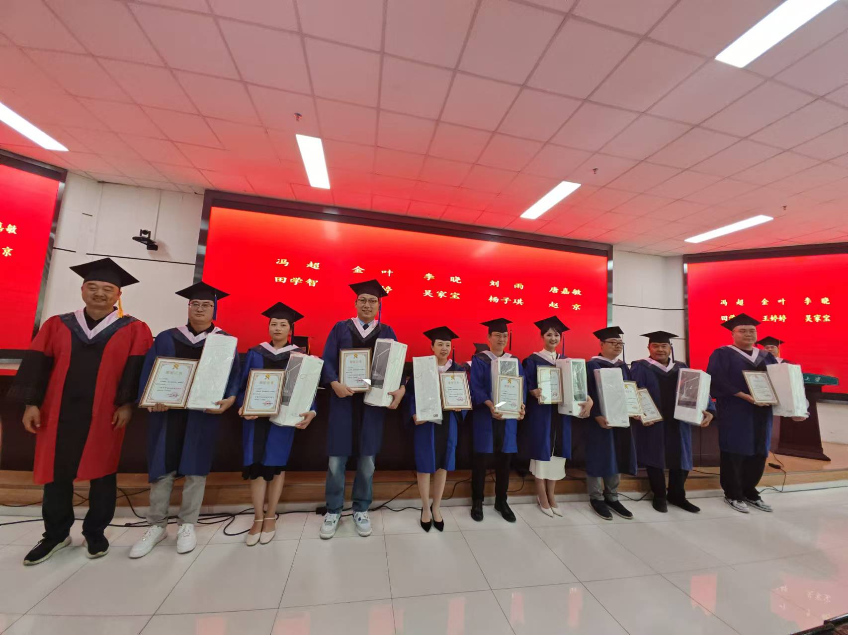 党总支书记赵军、院长杨国涛教授、副院长康凌翔教授及MBA中心王艳老师、李婷老师、罗婧老师与2024届全体MBA毕业生同堂共庆。典礼由麻将胡了2