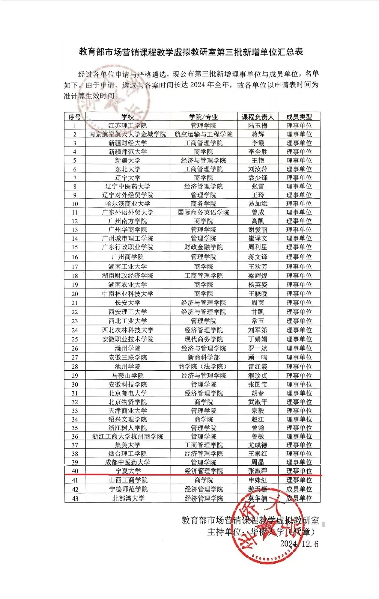 市场营销专业经过遴选成为理事单位加入了教育部市场营销课程教学虚拟教研室。