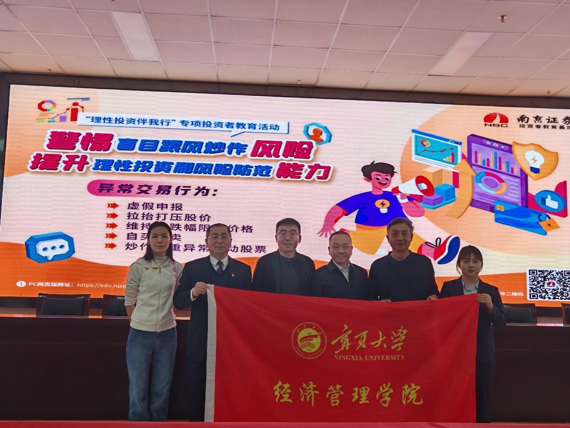 校友——中国人民银行宁夏分行反诈专班赵冰主任做了《电信网络诈骗精准治理》、南京证券正源南街营业部杨晶晶老师做了《ETF基金知识简述》,参与讲座的学生纷纷表示,此次活动不仅让他们对金融市场有了深入了解,更对金融市场风险防范有了充分地认识。最后总经理郑刚以《党建引领推动校企共建发展》进行整个活动的总结。参与讲座的学生纷纷表示,此次活动不仅让他们对金融市场有了深入了解,更对金融市场风险防范有了充分的认识。