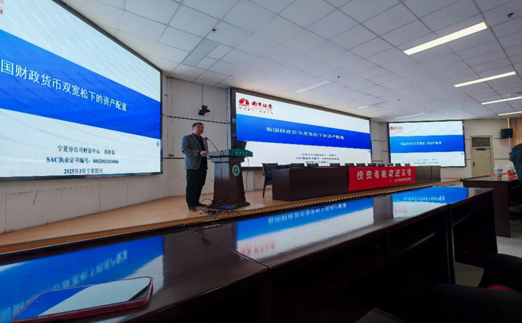 与南京证券银川正源南街证券营业部于2025年3月12日联合举办了“我国财政货币双宽松下的资产配置”专题讲座。本次活动旨在探讨当前财政货币政策背景下资产配置的新趋势与新策略,为区域经济发展和金融人才培养提供智力支持。南京证券银川正源南街证券营业部总经理郑刚、中国人民银行宁夏分行反诈工作专班赵冰主任、麻将胡了2